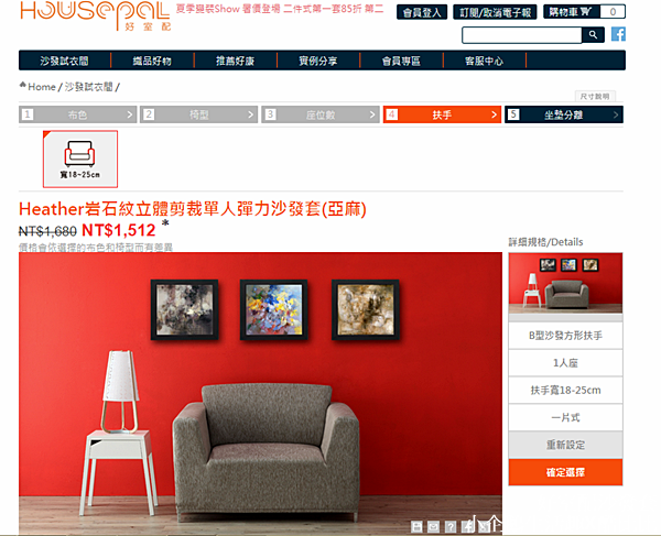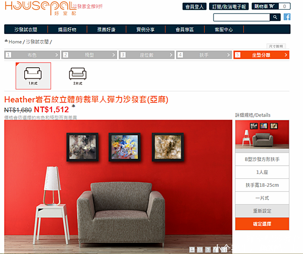 在好室配的網站中,不僅可以選擇多樣款式的沙發套