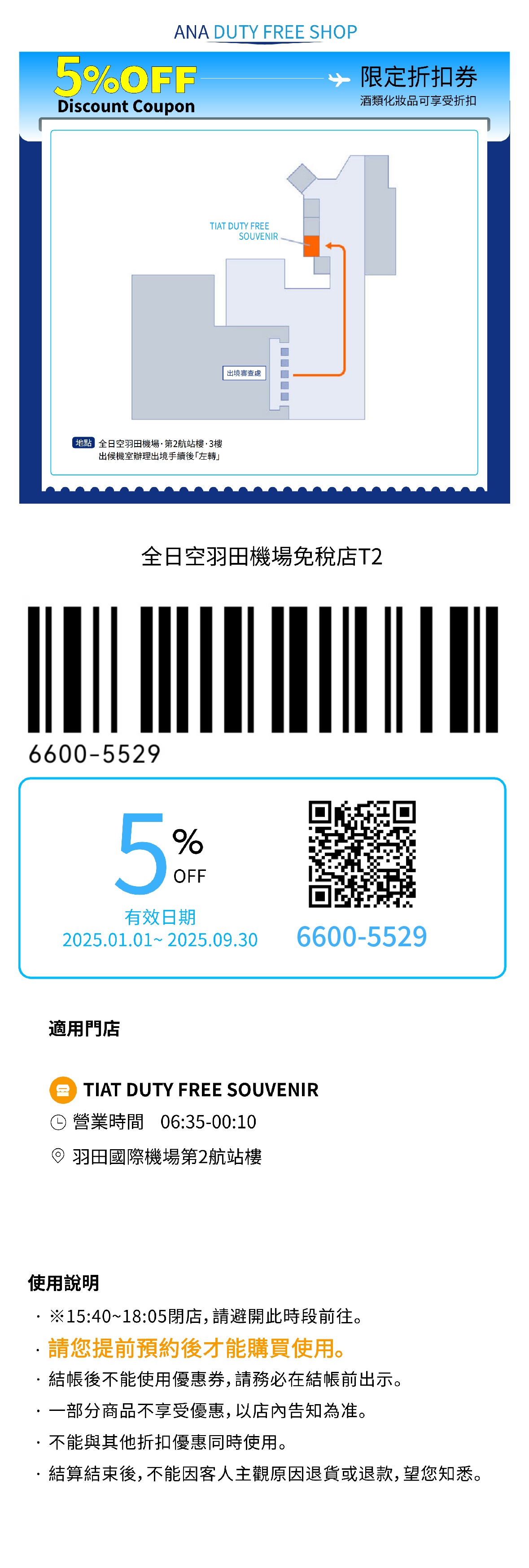 東京羽田機場/成田機場 ANA免稅店95折優惠券 Coupon/折價券/折扣券